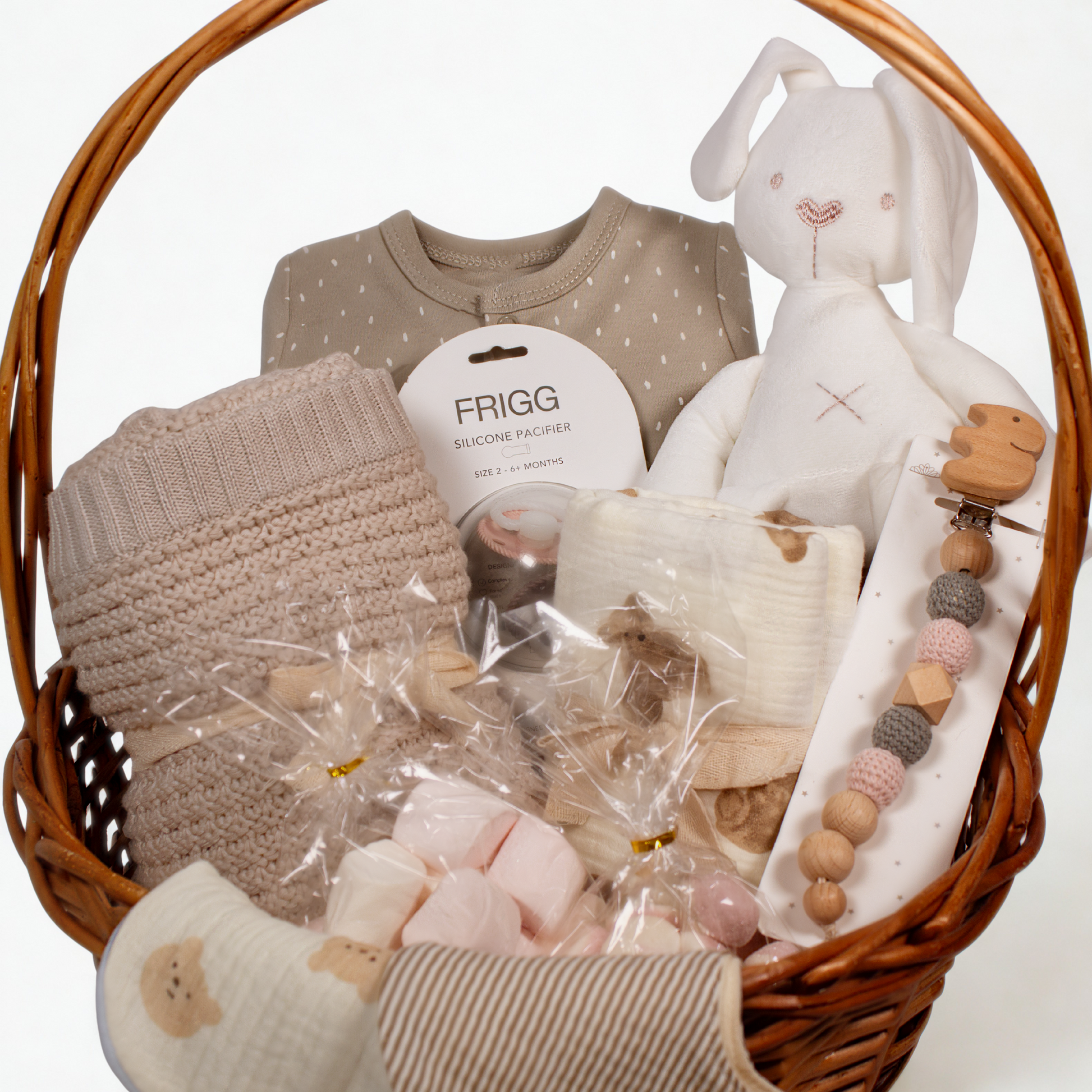 Celebrate the arrival of a precious new baby with our large “Bundle Of Joy” newborn gift basket, thoughtfully curated in soft, neutral tones perfect for both baby boys and girls. Designed with elegance and care, this timeless keepsake makes a beautiful baby shower, hospital, or newborn welcome gift.